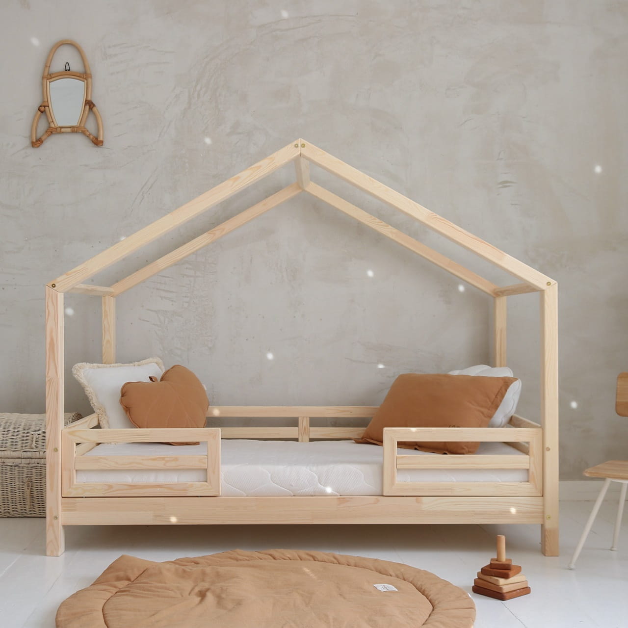 Νέο κρεβάτι Montessori HouseBed Fello Duo κατασκευασμένο εξολοκλήρου από μασίφ ξύλο και σύμφωνα με την μοντεσσοριανή φιλοσοφία. Είναι χαμηλό, πολύ κοντά στο πάτωμα, για να ανεβοκατεβαίνει το παιδί μόνο του χωρίς τη βοήθεια του γονέα από πολύ μικρή ηλικία!