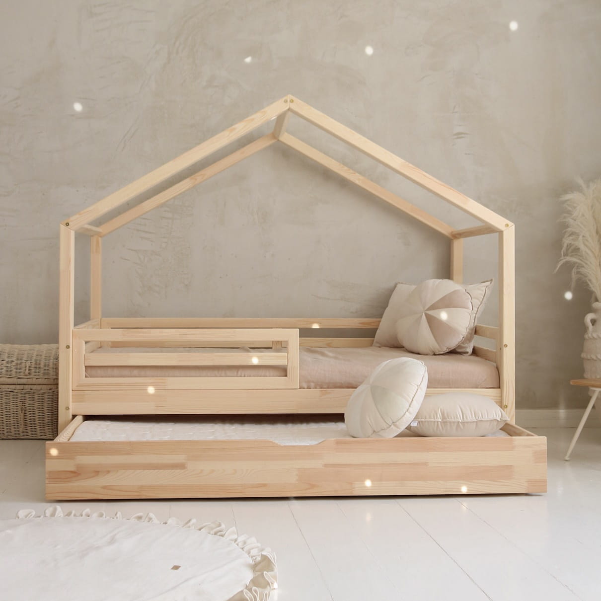 Κρεβάτι Παιδικό Montessori HouseBed Bello Plus με Αφαιρούμενα Κάγκελα 23cm & Συρτάρι σε Φυσικό Ξύλο 90×200cm Luletto (Δώρο 10% έκπτωση στο Στρώμα)