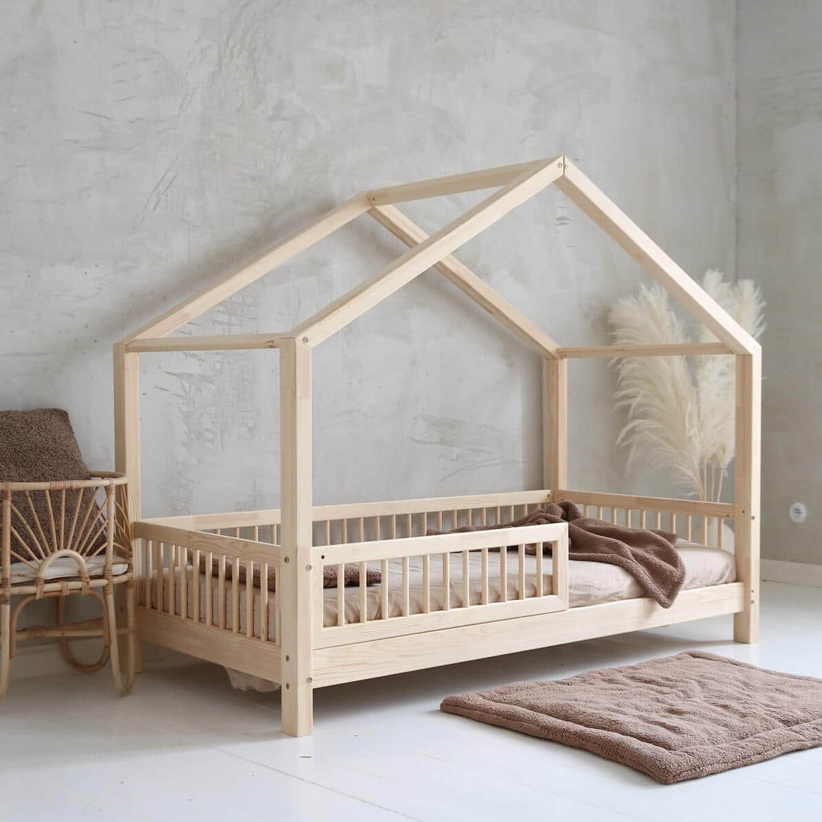 Κρεβάτι Παιδικό Montessori House Bed με κάγκελα 23cm σε Φυσικό Ξύλο 90×190cm Luletto (Δώρο 10% έκπτωση στο Στρώμα)