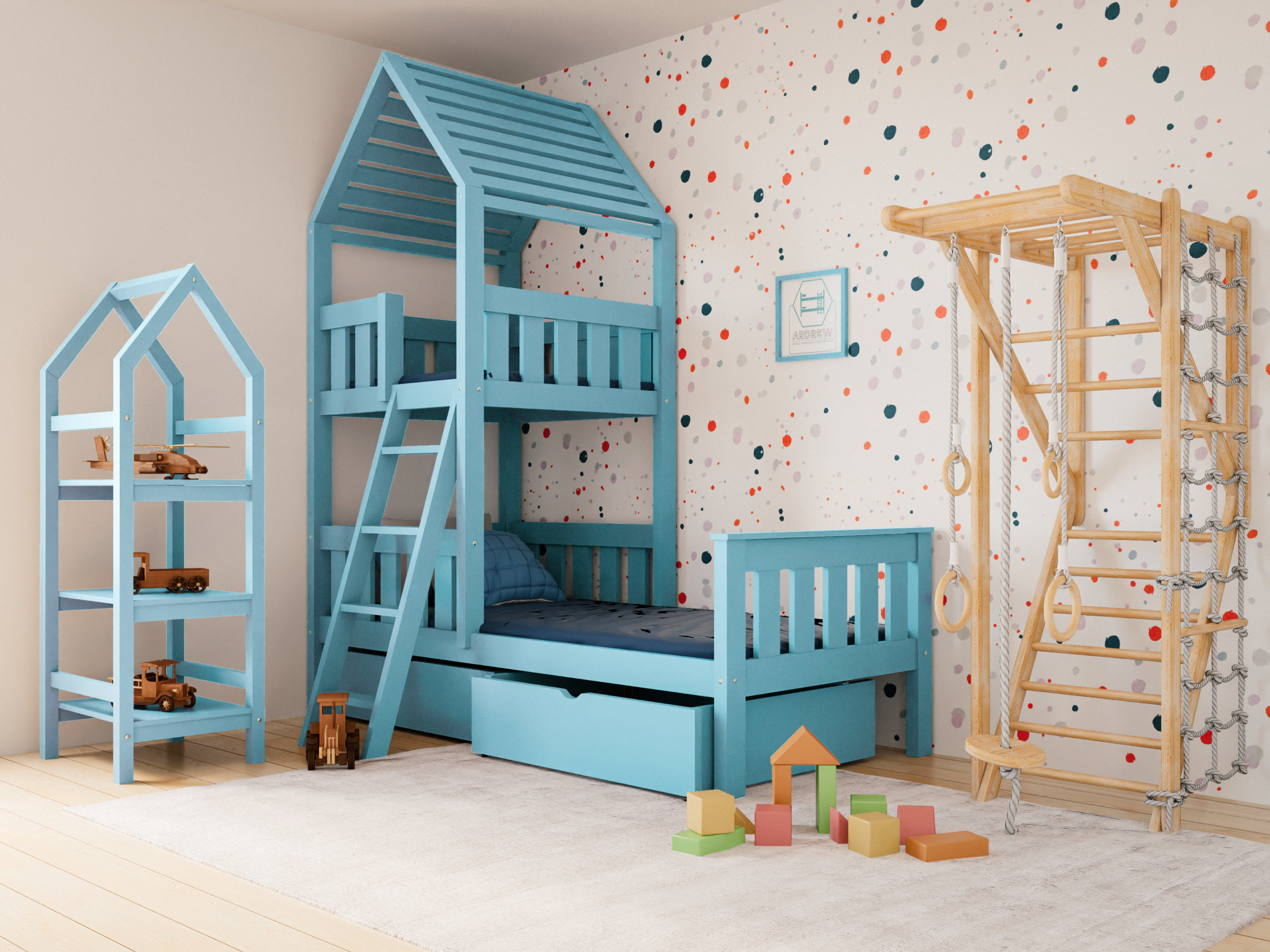 Κρεβάτι Σπιτάκι Aga House με Συρτάρια από μασίφ ξύλο Blue 90×200cm (Δώρο 10% Έκπτωση στo Στρώμα)