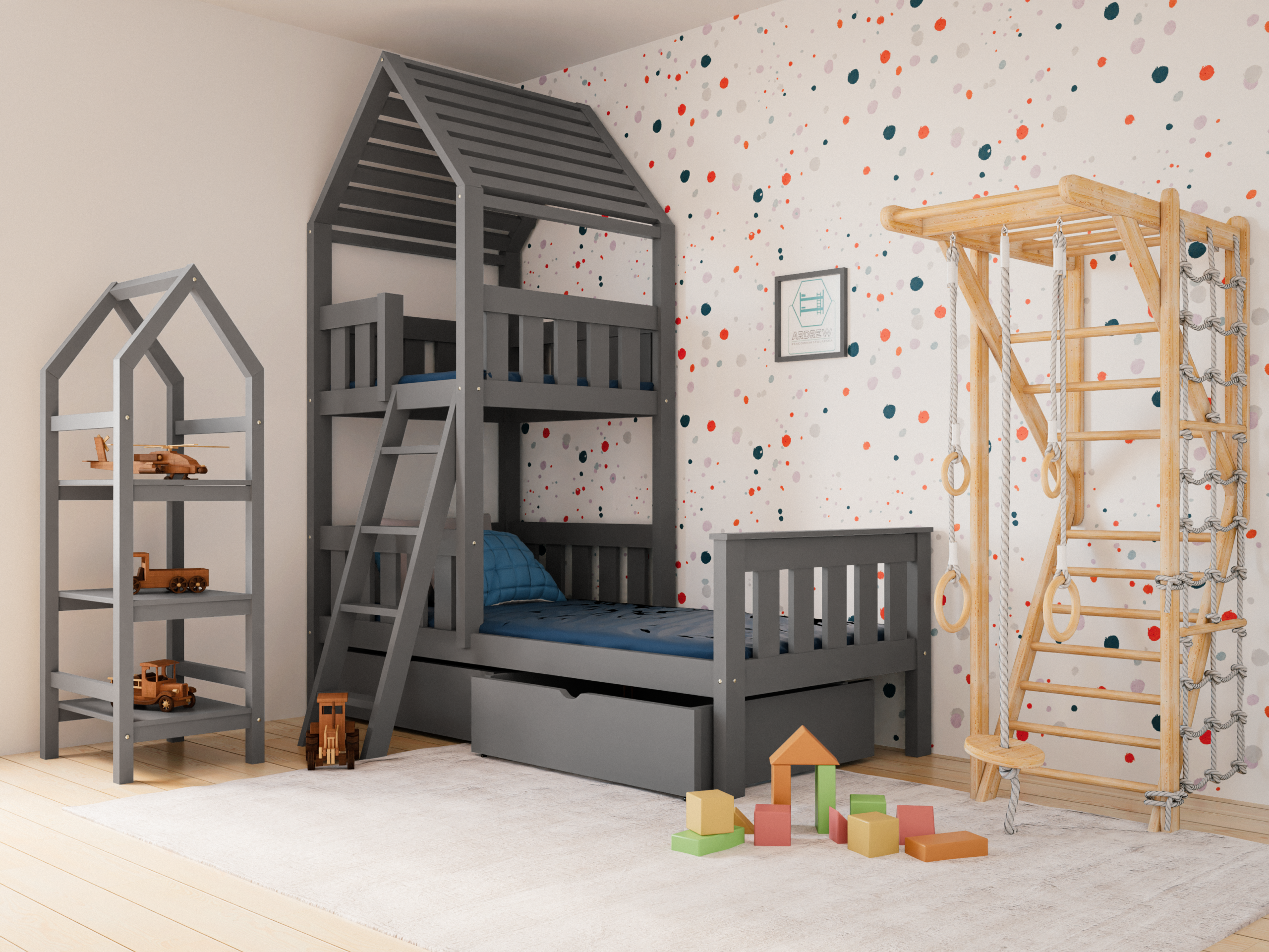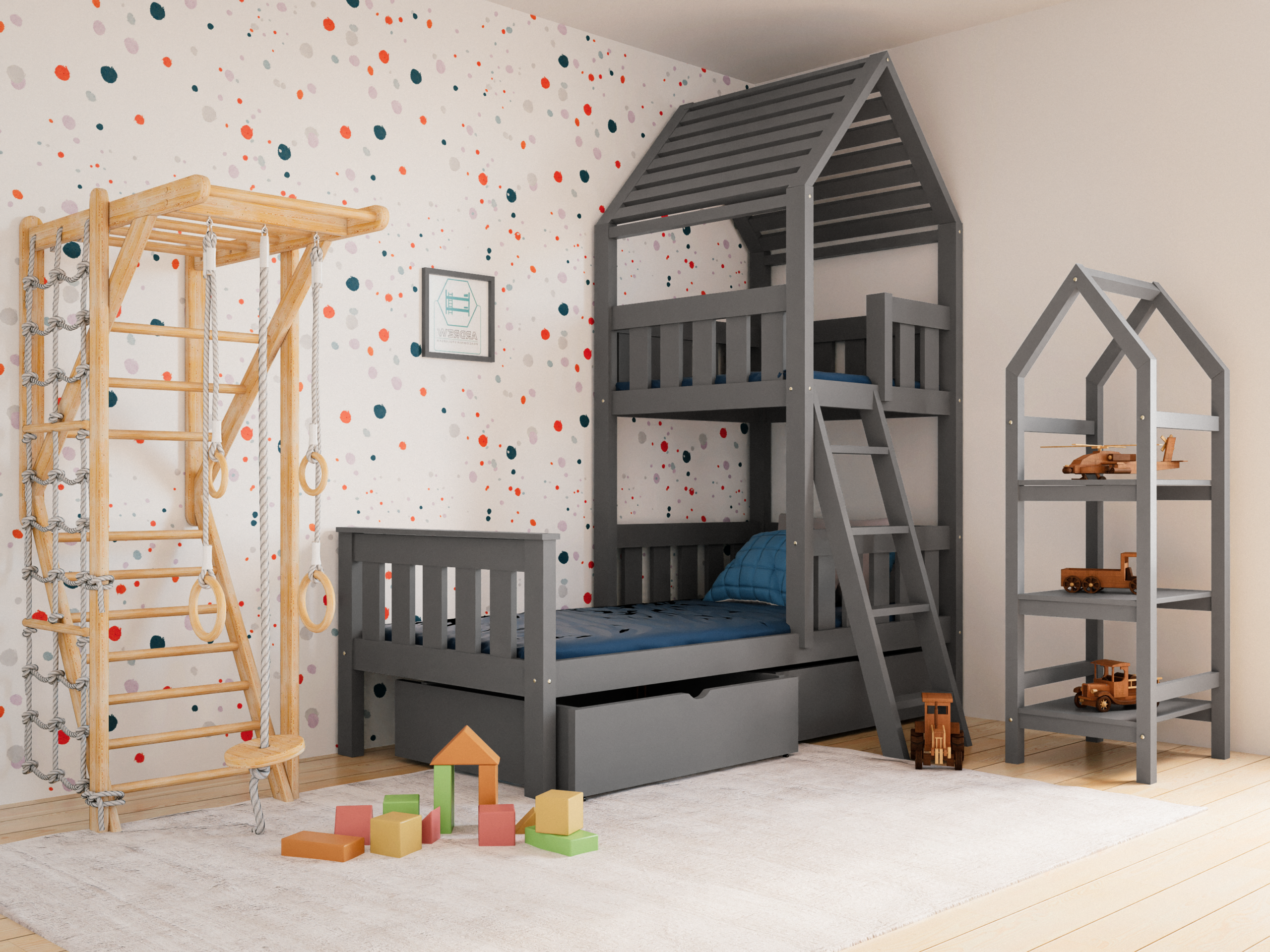 Κρεβάτι Σπιτάκι Aga House με Συρτάρια από μασίφ ξύλο Grey 90×200cm (Δώρο 10% Έκπτωση στo Στρώμα)