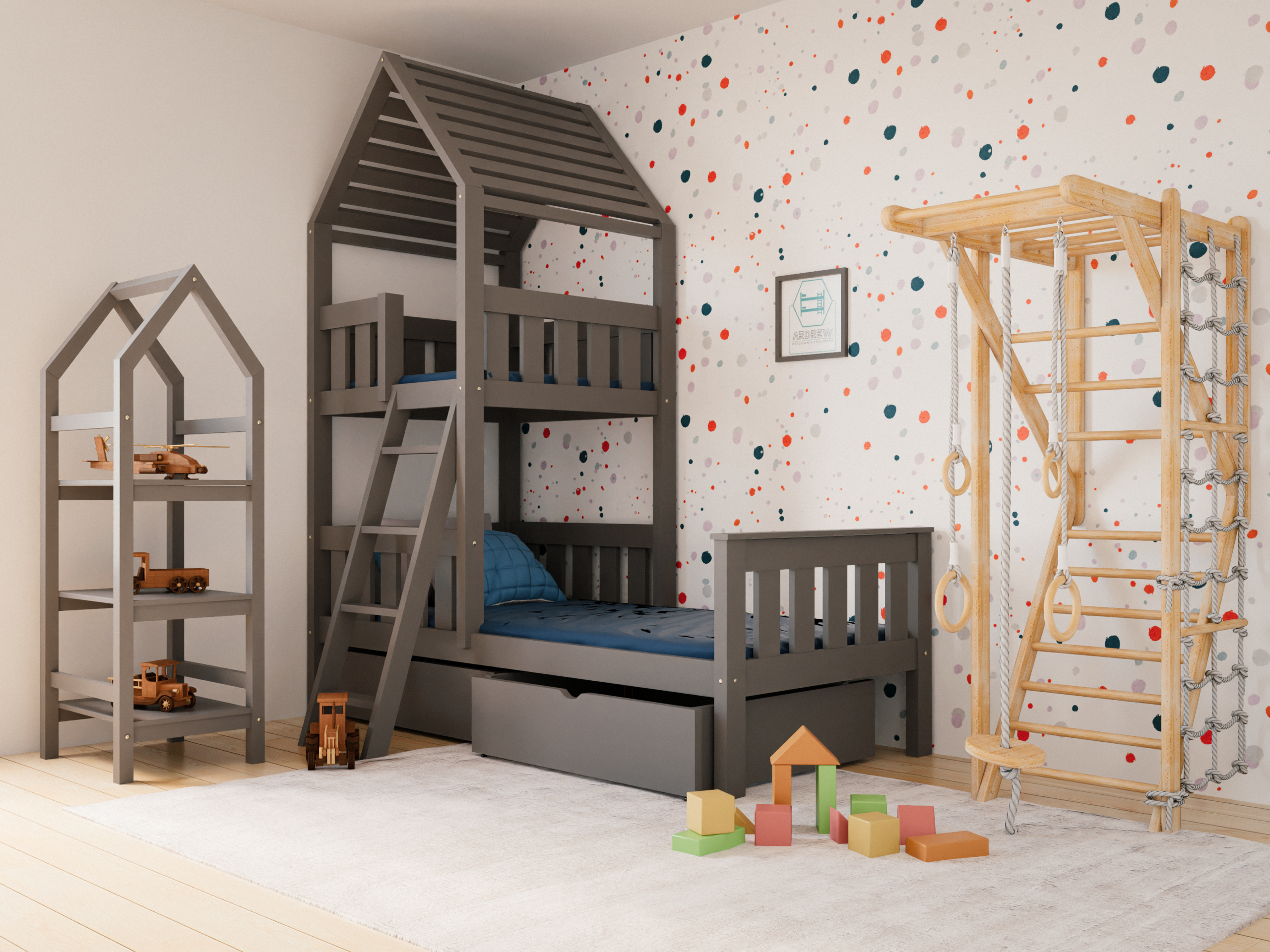 Κρεβάτι Σπιτάκι Aga House με Συρτάρια από μασίφ ξύλο Graphite 90×200cm (Δώρο 10% Έκπτωση στo Στρώμα)
