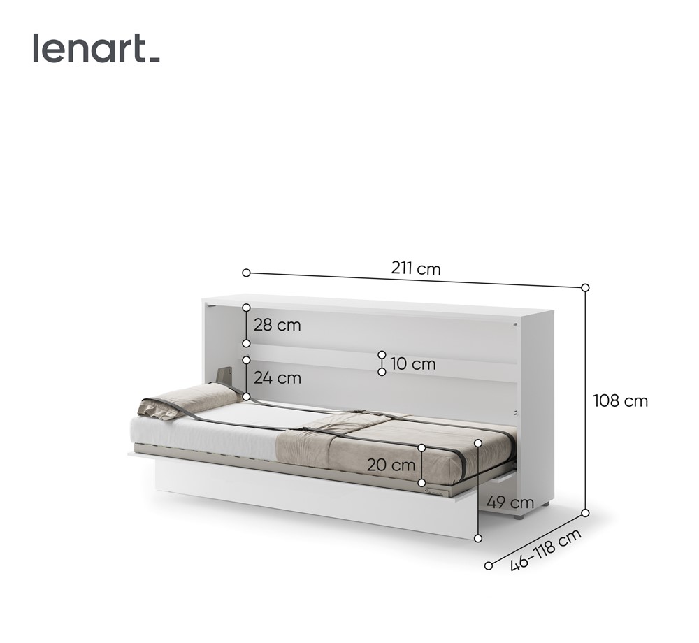 Ένα μοντέρνο και λειτουργικό οριζόντιο κρεβάτι Bed Concept είναι μια εξαιρετική ιδέα για παιδιά και εφήβους που τους αρέσουν οι πρωτότυπες λύσεις. Είναι ένα έξυπνο έπιπλο που σας επιτρέπει να μετατρέψετε οποιοδήποτε δωμάτιο σε ένα άνετο υπνοδωμάτιο σε λίγα λεπτά. Η λύση θα λειτουργήσει εξαιρετικά σε σαλόνια, μικρά διαμερίσματα και παιδικά δωμάτια, και θα σας επιτρέψει να διαχειρίζεστε εύκολα και γρήγορα τον χώρο του σπιτιού σας. Το BC-05 για στρώμα πλάτους 120 cm είναι ασφαλές, σταθερό και ανθεκτικό – διαθέτει ενισχυμένο, επιτοίχιο σώμα, μεταλλικό σκελετό και ανθεκτική στήριξη ενσωματωμένη στο μπροστινό μέρος των επίπλων.