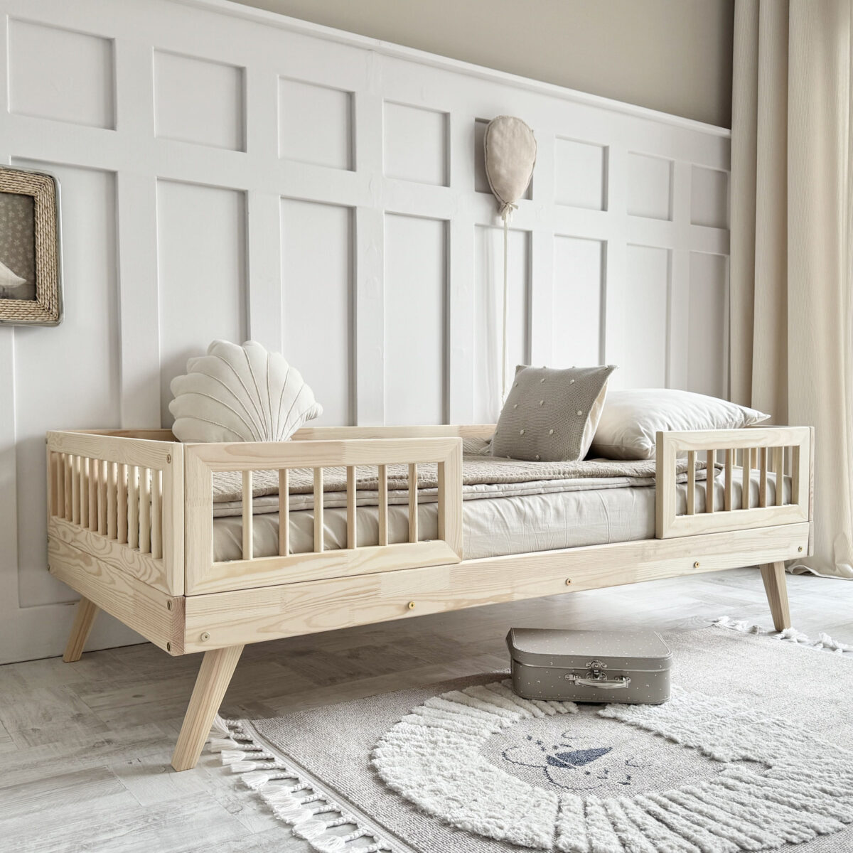 Ταυτόχρονα, ο σκανδιναβικός σχεδιασμός χαρίζει minimal αισθητική και καθαρές γραμμές, ενώ προσαρμόζεται εύκολα σε κάθε παιδικό δωμάτιο. Επιπλέον, το φυσικό ξύλο πεύκου προσθέτει ζεστασιά και διαχρονικό χαρακτήρα στον χώρο.
