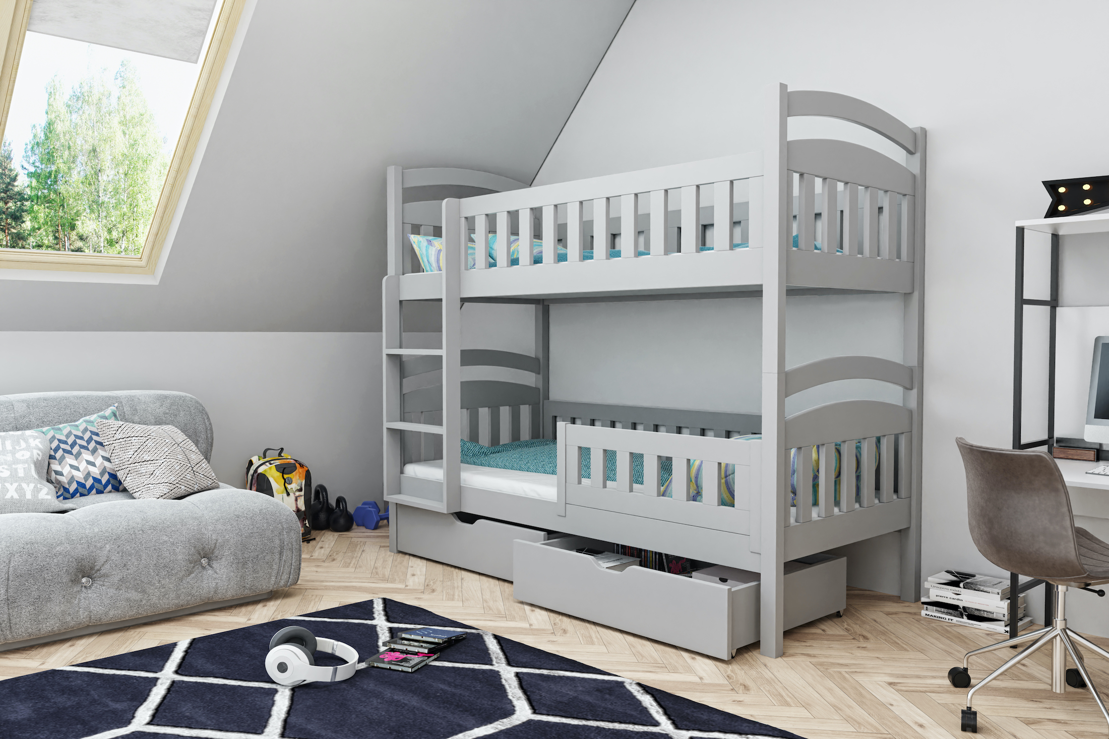 Επιπλέον, η παιδική κουκέτα Dominik για δύο παιδιά περιλαμβάνει δύο ευρύχωρα συρτάρια αποθήκευσης, τα οποία διευκολύνουν την τακτοποίηση κλινοσκεπασμάτων, παιχνιδιών και προσωπικών αντικειμένων. Έτσι, το παιδικό δωμάτιο παραμένει καθαρό και οργανωμένο σε καθημερινή βάση.
