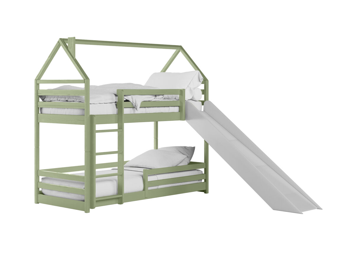 Κουκέτα Σπιτάκι Montessori PlayHouse με Τσουλήθρα από μασίφ ξύλο Olive 90×200cm (Δώρο 10% Έκπτωση στα Στρώματα)