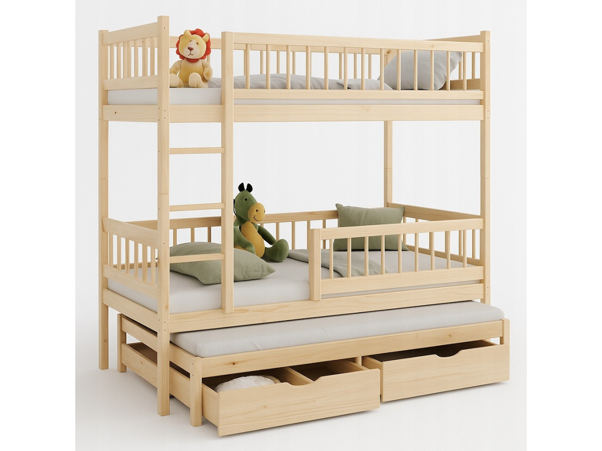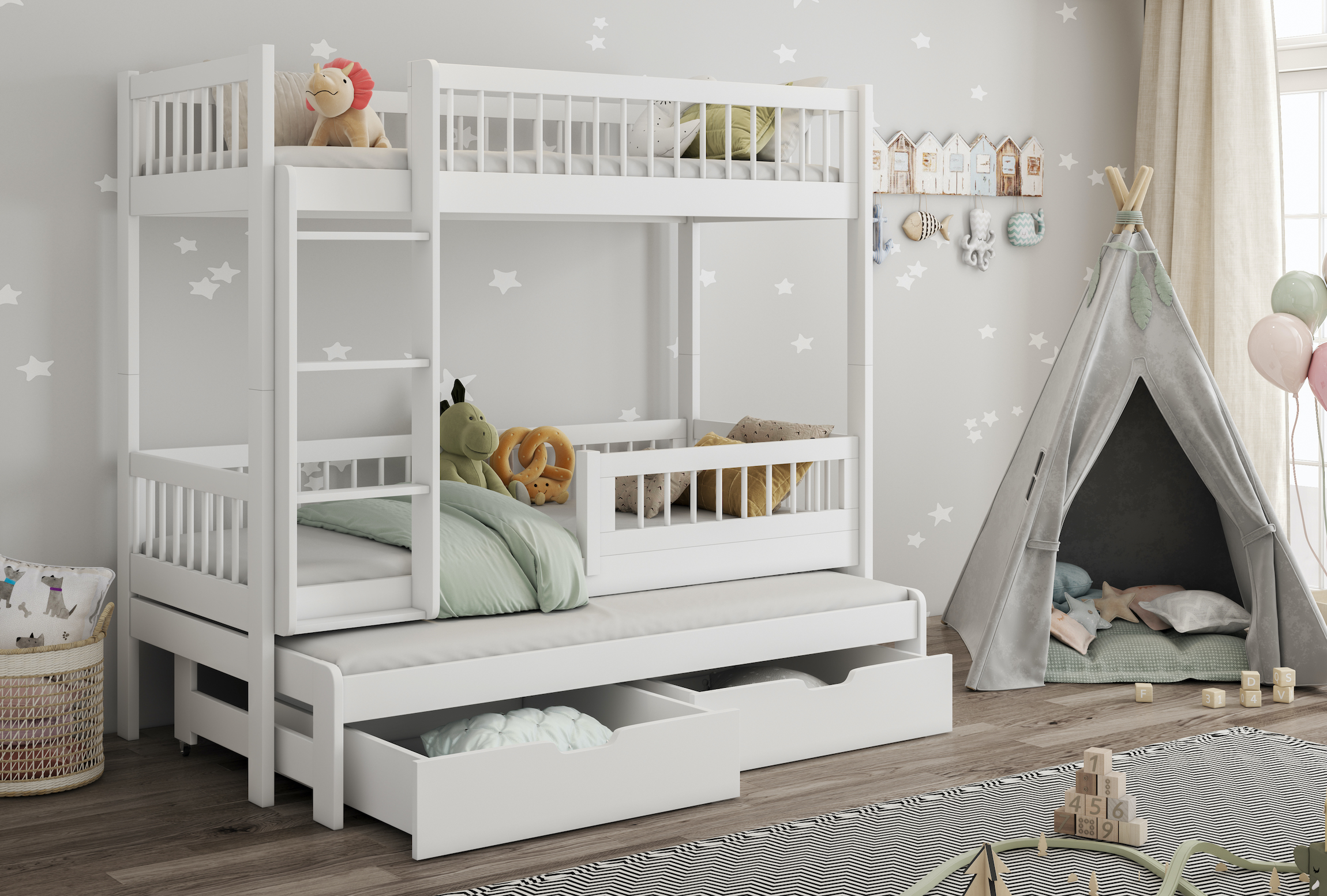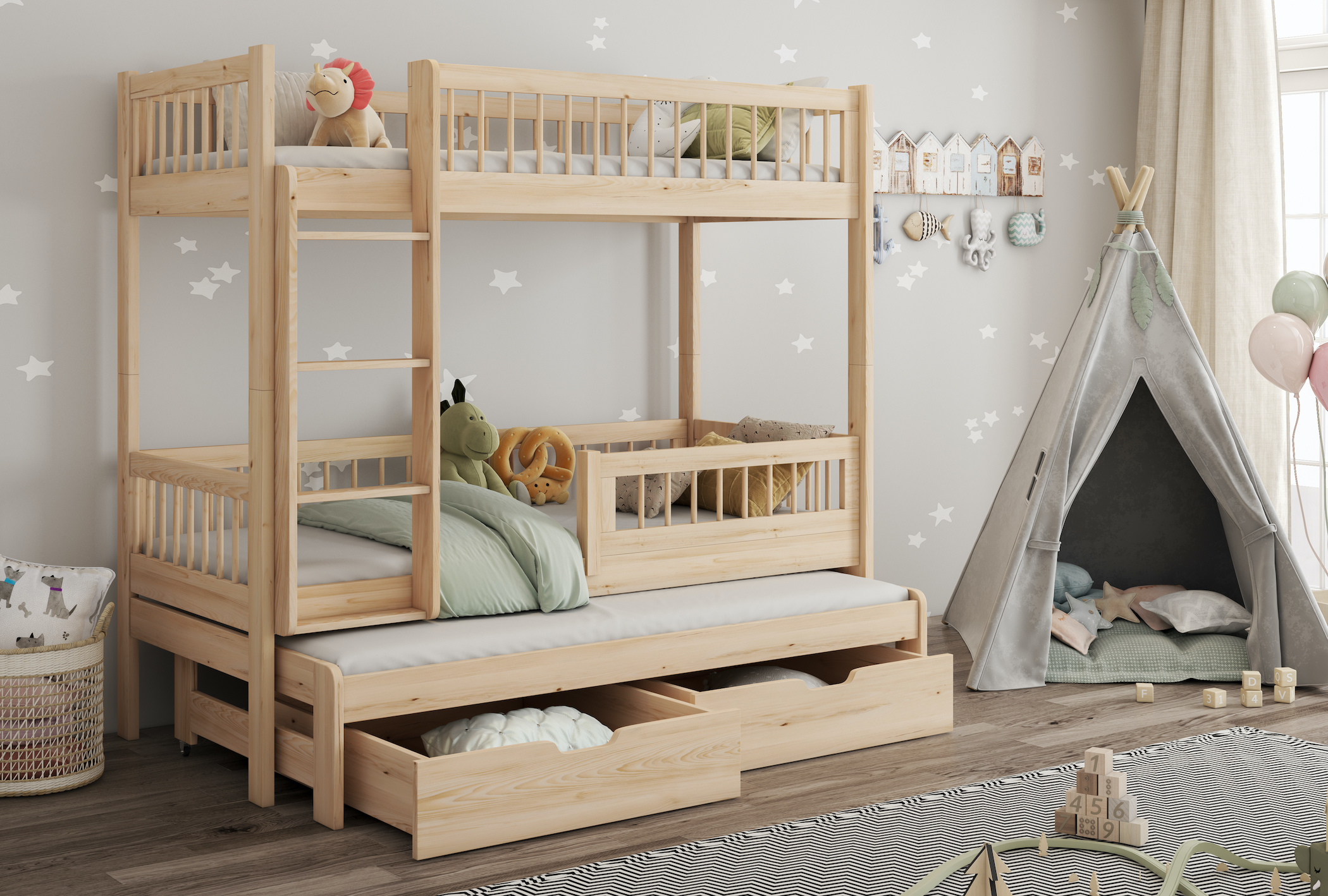 Η παιδική κουκέτα με συρόμενο κρεβάτι αποτελεί μία έξυπνη και λειτουργική λύση για τρία παιδιά στο ίδιο παιδικό δωμάτιο, καθώς συνδυάζει άνεση και πρακτικότητα σε καθημερινή βάση. Παράλληλα, το τρίτο συρόμενο κρεβάτι και τα δύο ευρύχωρα συρτάρια βοηθούν στην καλύτερη οργάνωση του χώρου, ώστε το δωμάτιο να παραμένει τακτοποιημένο.