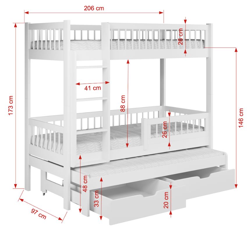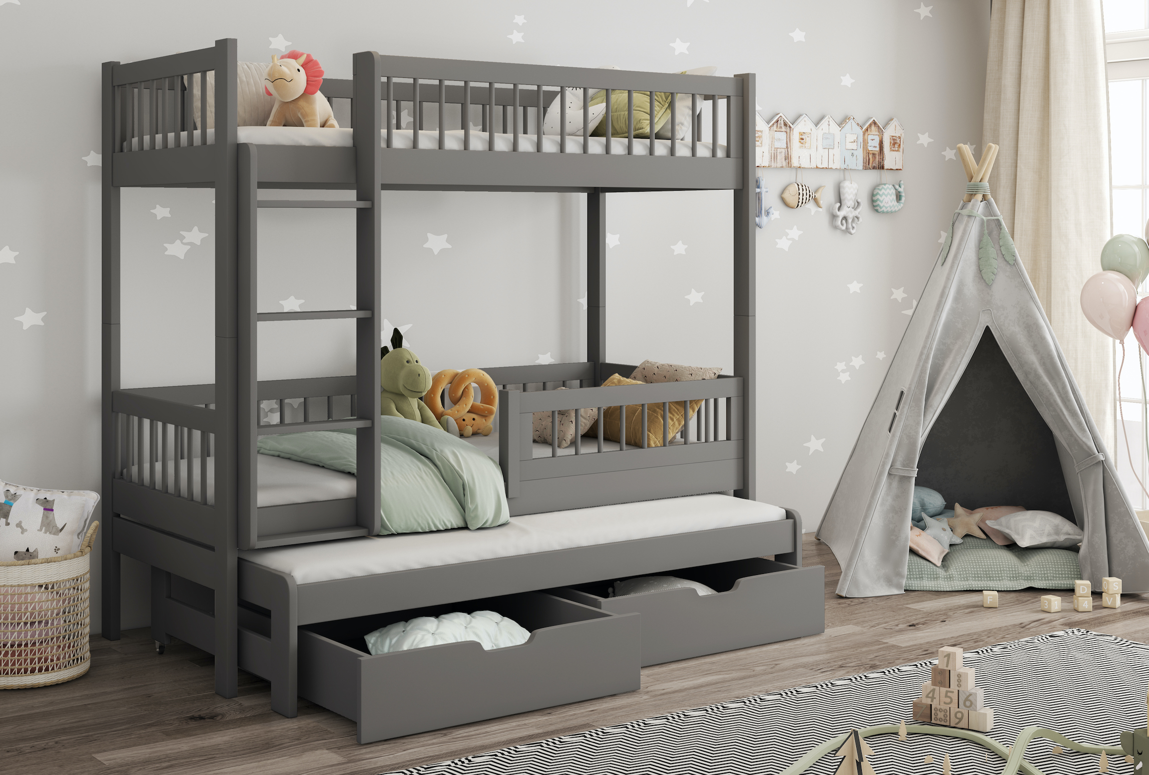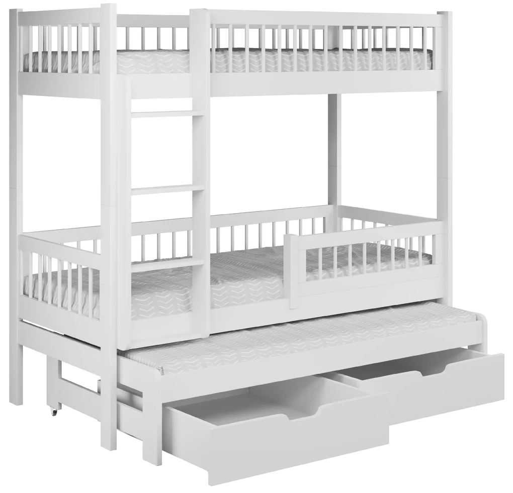 Η παιδική κουκέτα με συρόμενο κρεβάτι αποτελεί μία έξυπνη και λειτουργική λύση για τρία παιδιά στο ίδιο παιδικό δωμάτιο, καθώς συνδυάζει άνεση και πρακτικότητα σε καθημερινή βάση. Παράλληλα, το τρίτο συρόμενο κρεβάτι και τα δύο ευρύχωρα συρτάρια βοηθούν στην καλύτερη οργάνωση του χώρου, ώστε το δωμάτιο να παραμένει τακτοποιημένο.