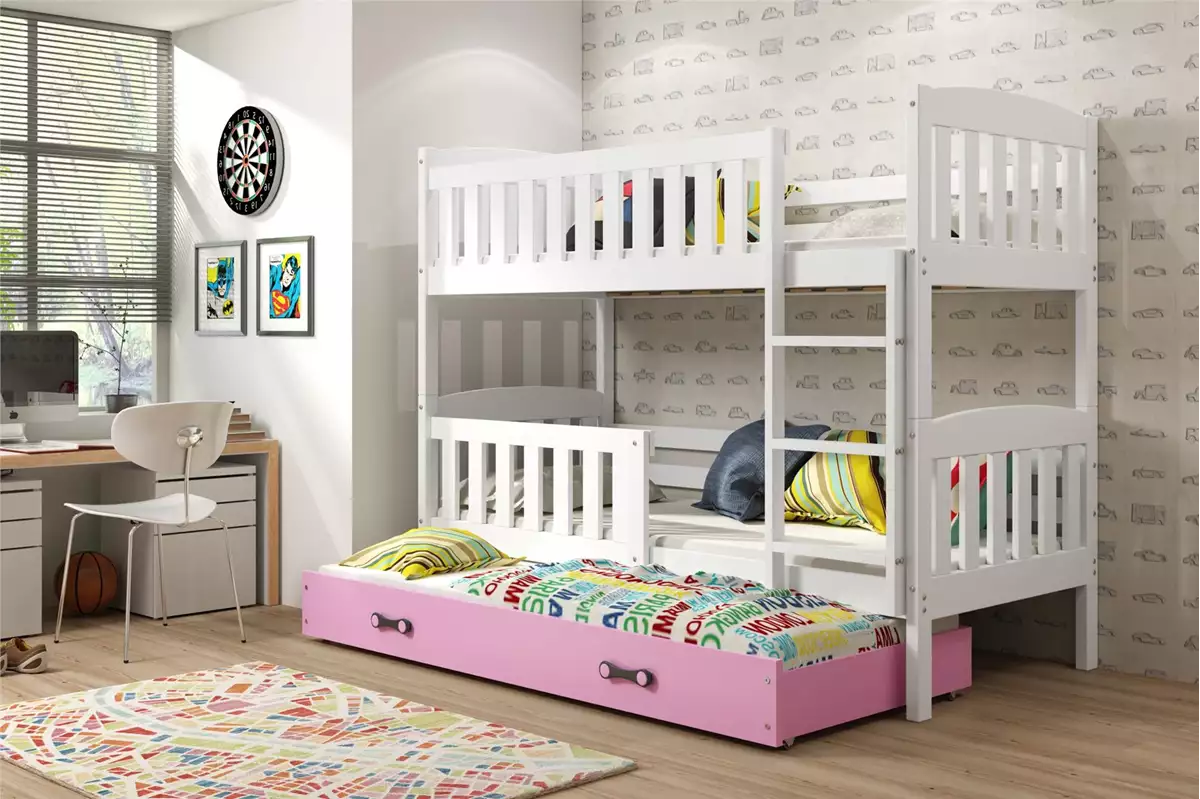 Κουκέτα Dorian με 3o Κρεβάτι από μασίφ ξύλο White & Pink 90×200cm (Δώρο τα 3 Στρώματα)