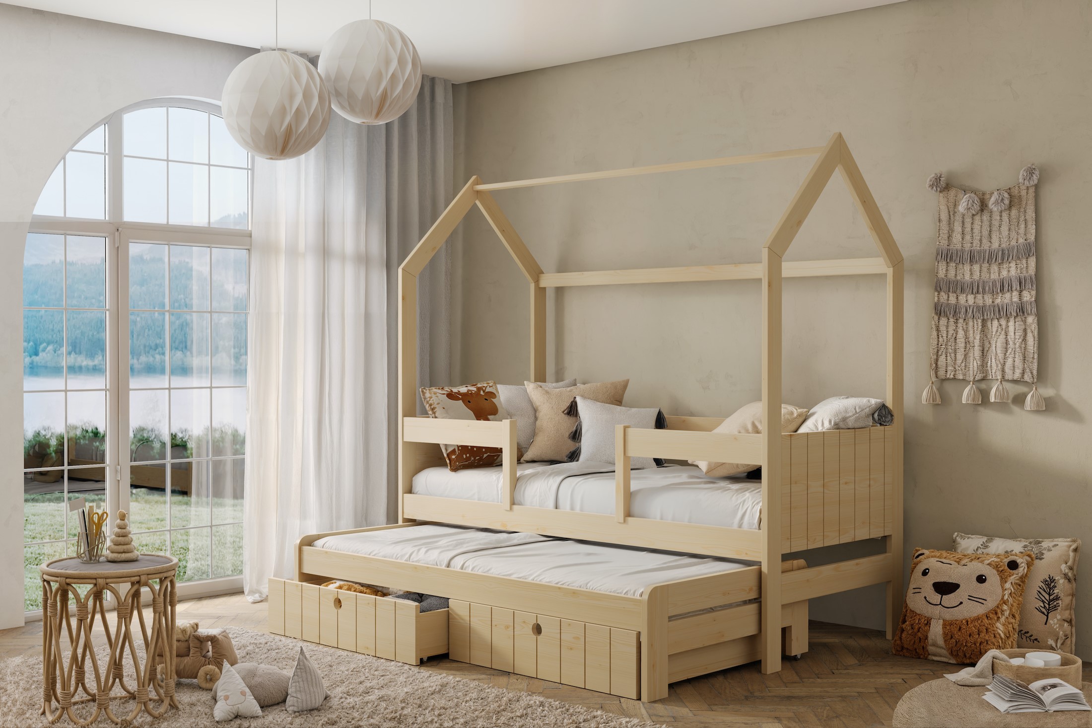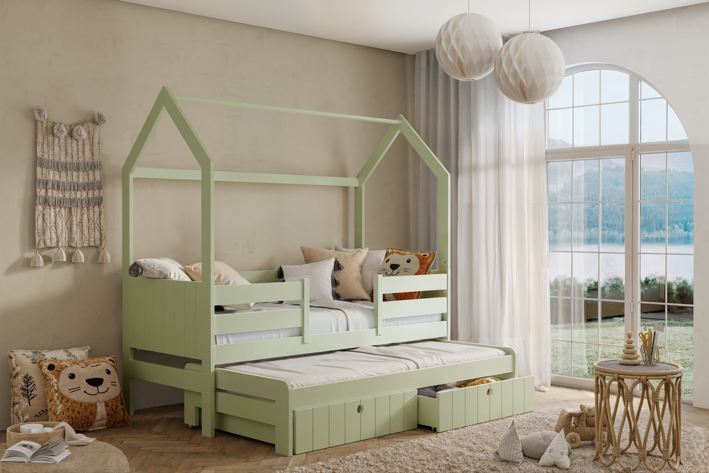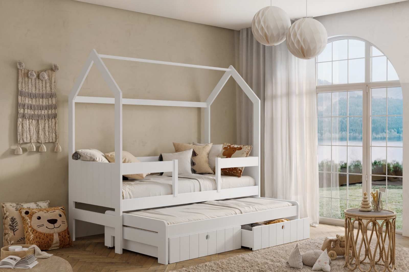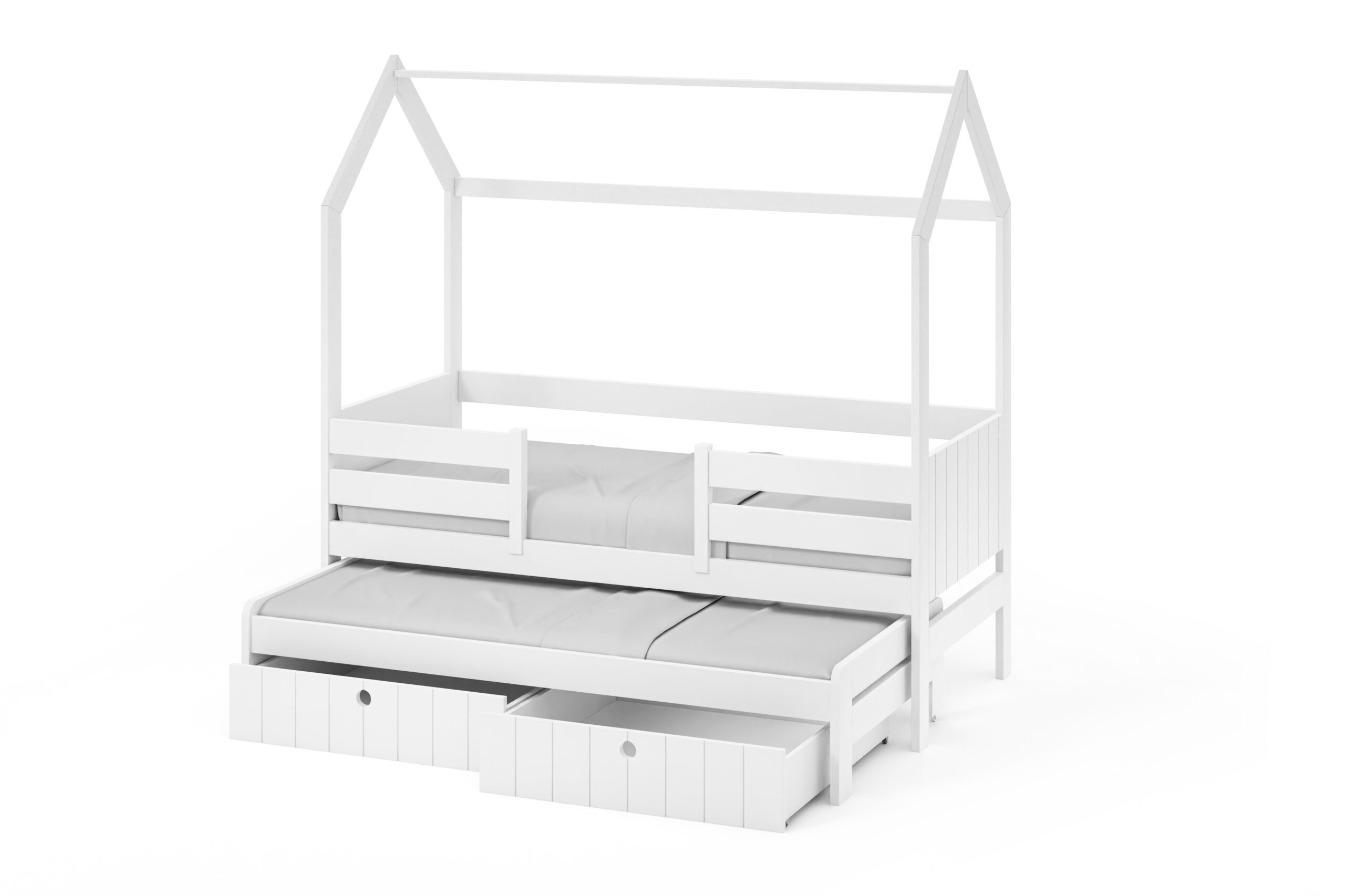 Το παιδικό κρεβάτι σπιτάκι Nolan συνδυάζει φαντασία και πρακτικότητα, καθώς διαθέτει συρόμενο κρεβάτι, δύο συρτάρια και προστατευτικά φράγματα για ασφάλεια.