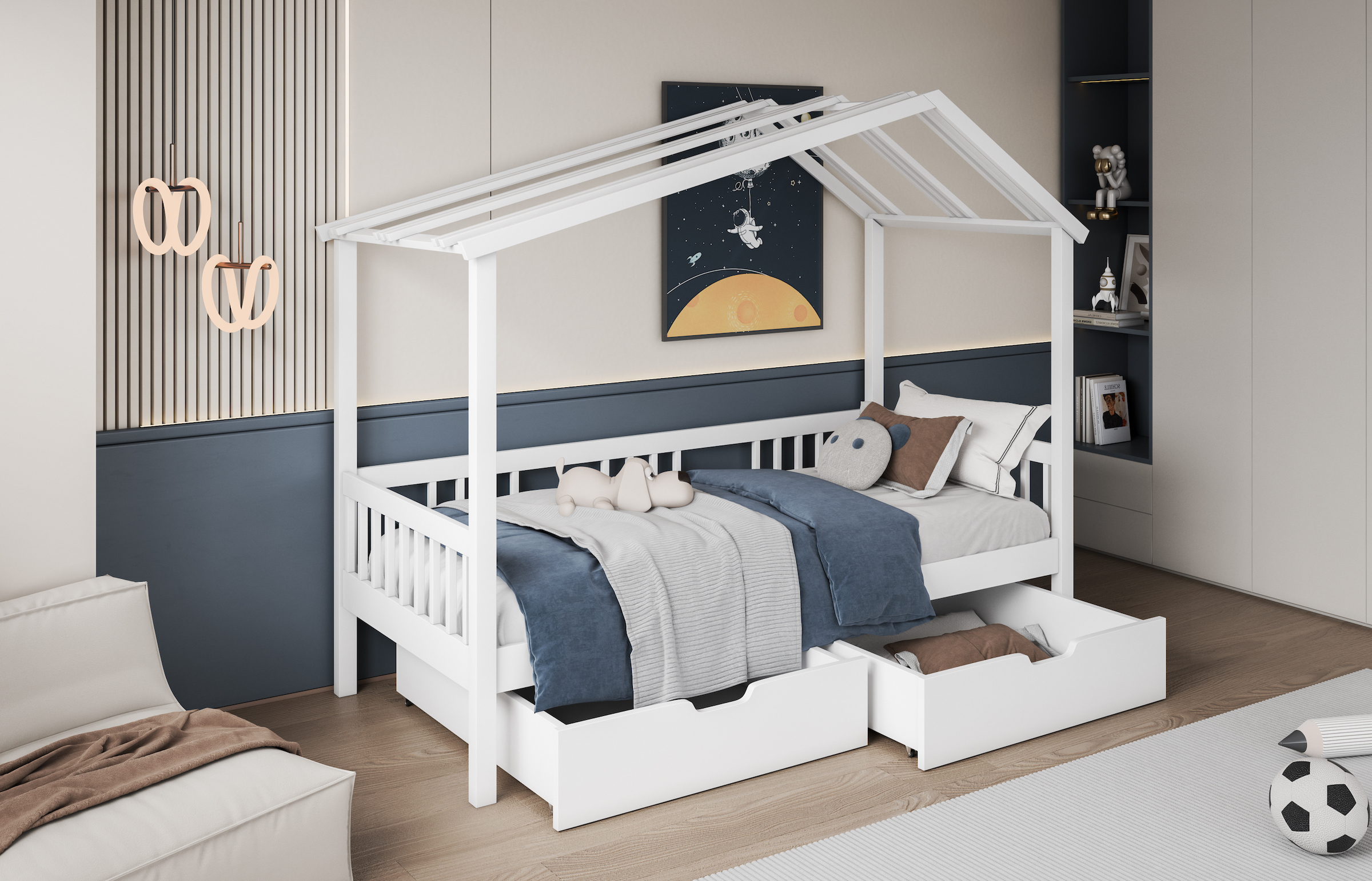 Κρεβάτι Σπιτάκι Pandora με Συρτάρια από μασίφ ξύλο 90×200cm (Δώρο 10% Έκπτωση στo Στρώμα)