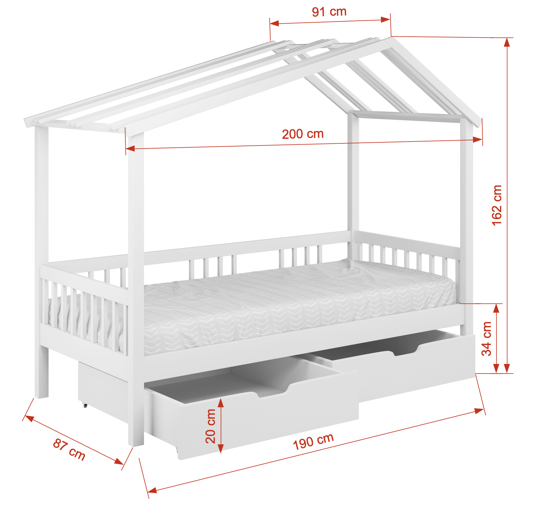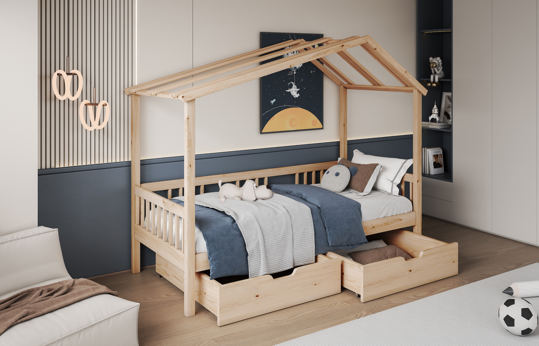 Το παιδικό κρεβάτι σπιτάκι Pandora δημιουργεί έναν παραμυθένιο και ασφαλή χώρο ύπνου, μετατρέποντας το παιδικό δωμάτιο σε μια ζεστή γωνιά γεμάτη φαντασία. Παράλληλα, ο σχεδιασμός σε σχήμα σπιτιού προσφέρει στο παιδί αίσθηση οικειότητας και ηρεμίας, ενισχύοντας την ποιότητα του ύπνου.