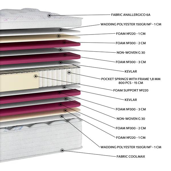 Οι πολλαπλές στρώσεις αφρού υψηλής ποιότητας συμβάλλουν στη σωστή κατανομή του βάρους και στη μείωση των σημείων πίεσης, δημιουργώντας μια άνετη αλλά σταθερή επιφάνεια ύπνου.