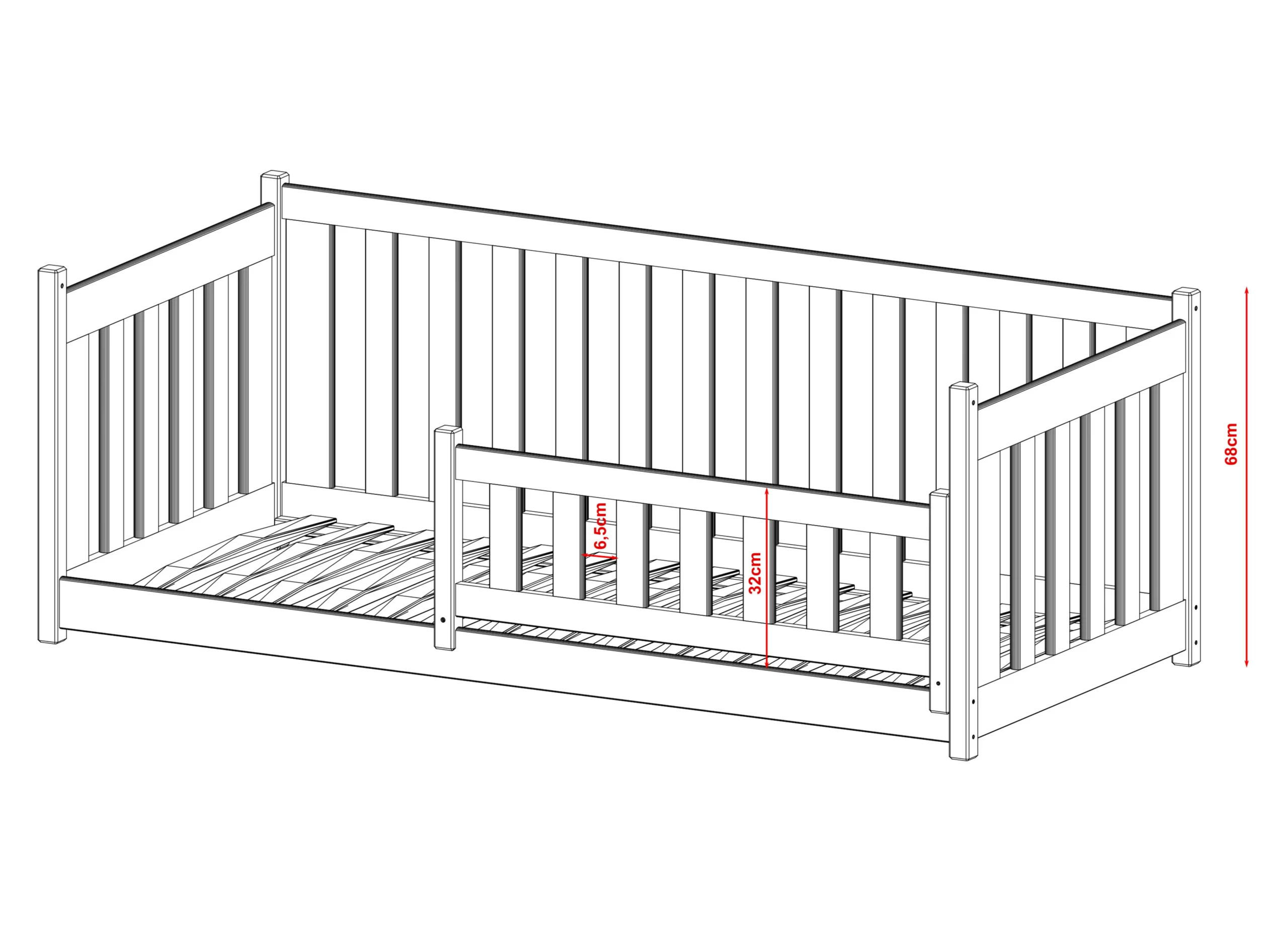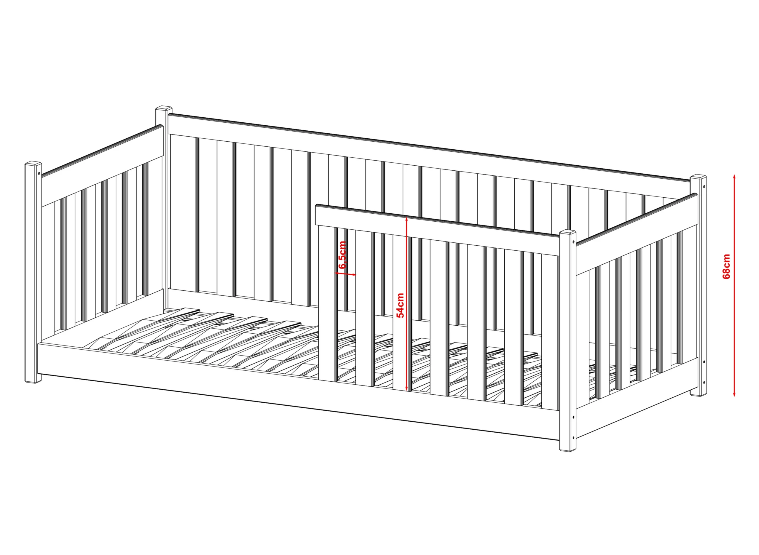 Το βασικό του πλεονέκτημα είναι το ψηλό και μακρύ προστατευτικό κιγκλίδωμα ύψους 54cm, το οποίο προσφέρει αυξημένη ασφάλεια κατά τη διάρκεια του ύπνου. Έτσι, το παιδί κοιμάται ήρεμα, ενώ εσείς νιώθετε σιγουριά για την προστασία του.