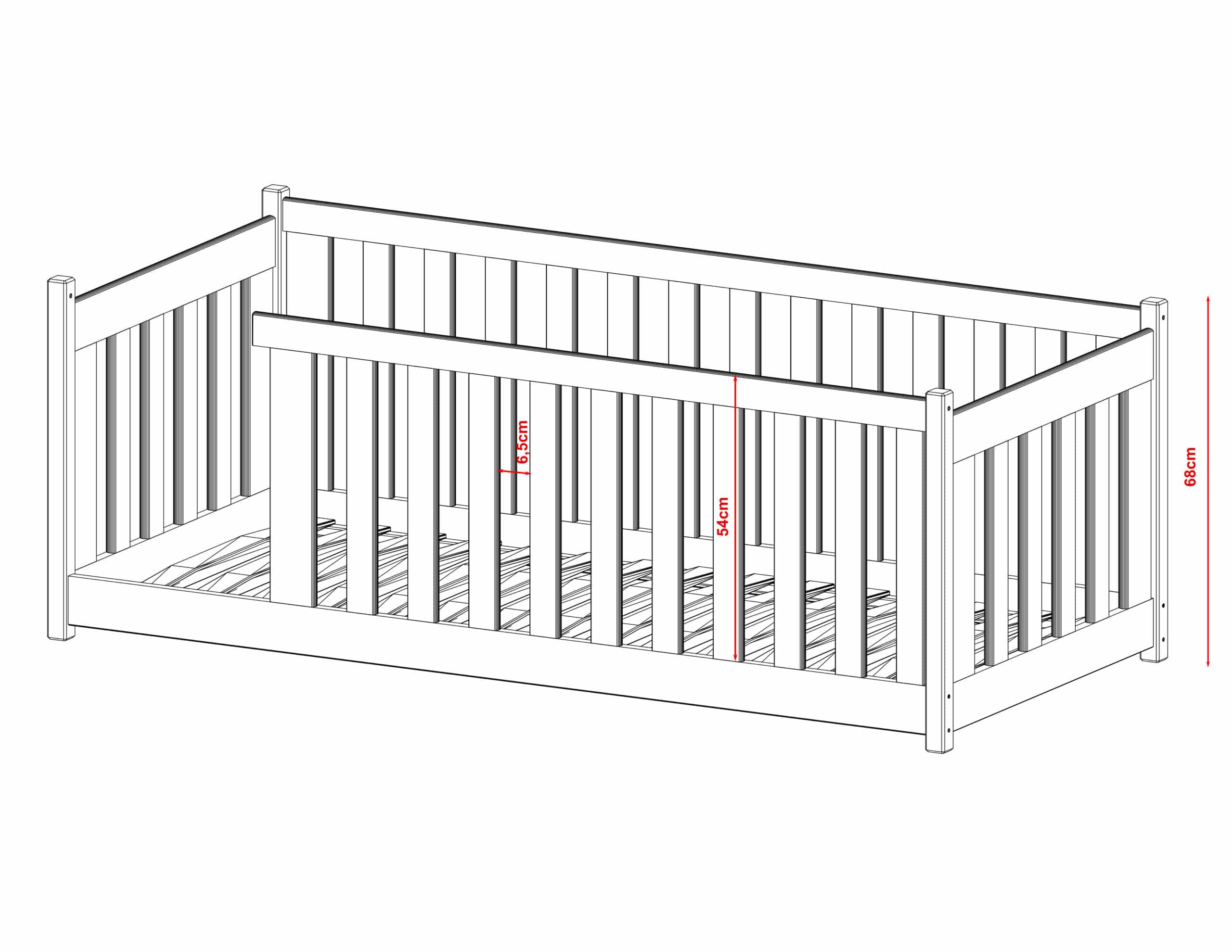 Kρεβάτι Montessori Kρεβάτι Montessori concept με Κάγκελα 54cm από μασίφ ξύλο White 90×200cm (Δώρο 10% Έκπτωση στο Στρώμα)