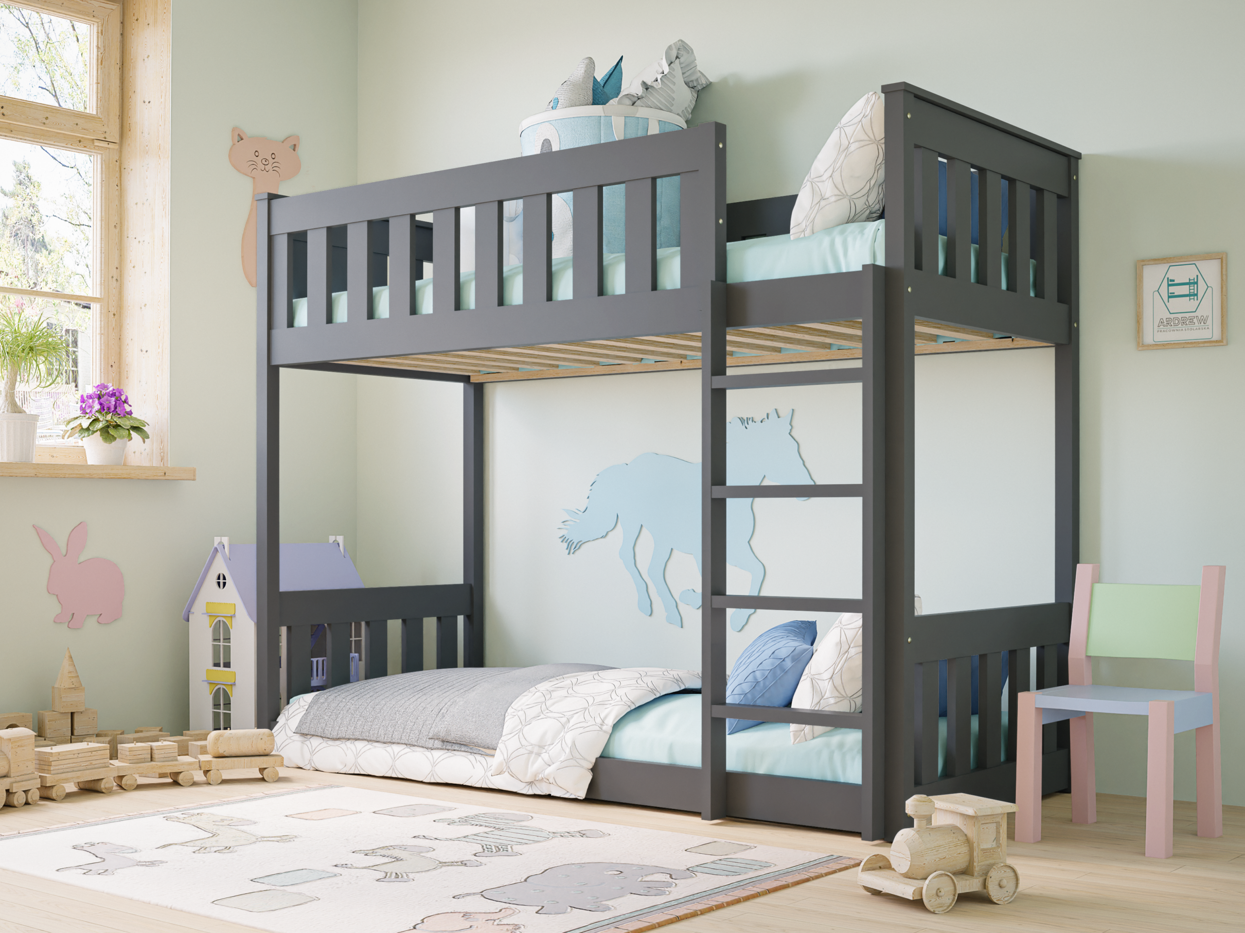 Χαμηλή Κουκέτα Ryk με Κάθετα Κάγκελα από μασίφ ξύλο Graphite 90×200cm (Δώρο 10% Έκπτωση στα Στρώματα)