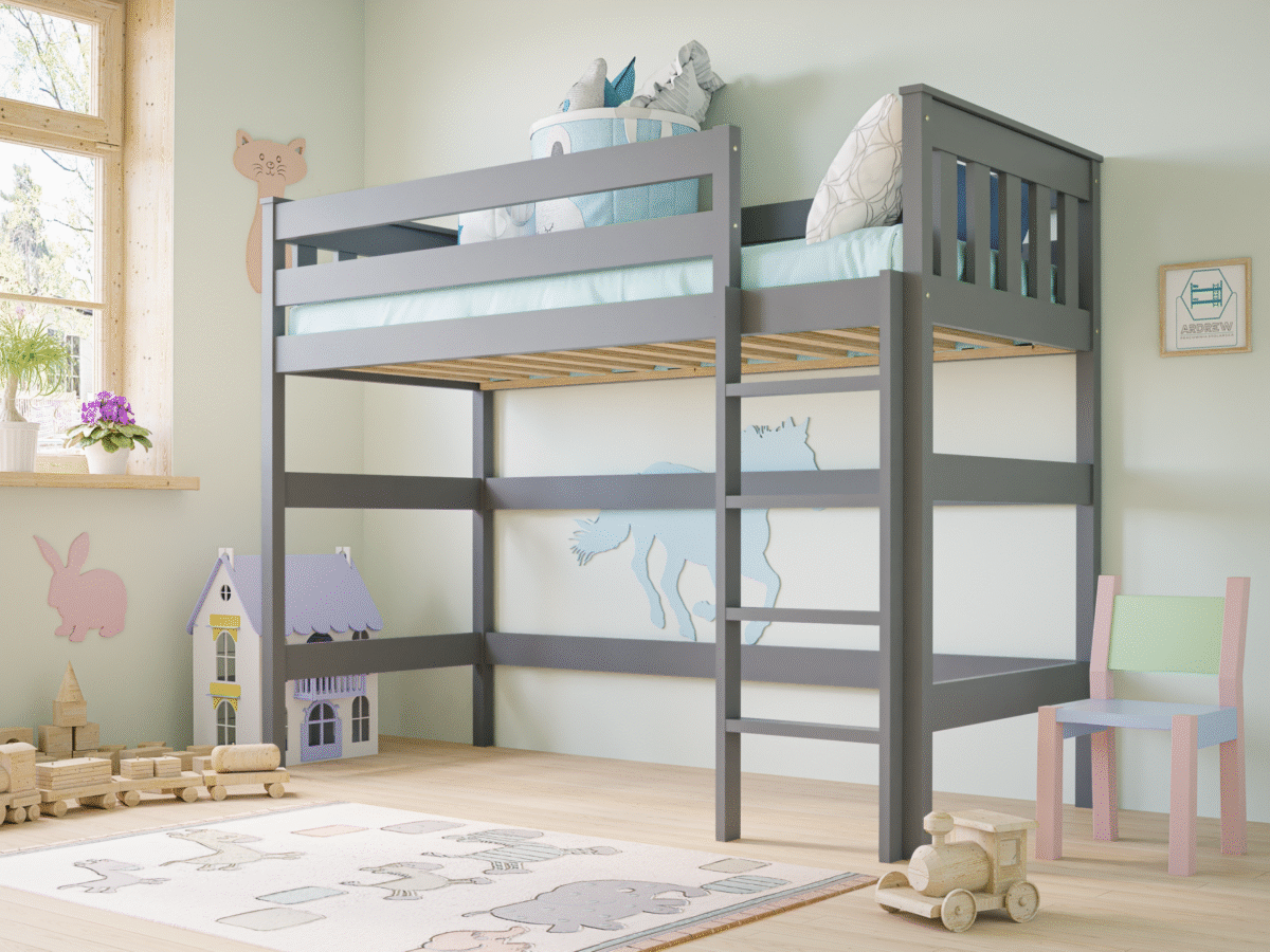Υπερυψωμένο Κρεβάτι Eryk από μασίφ ξύλο Grey 90×200cm (Δώρο 10% Έκπτωση στo Στρώμα)