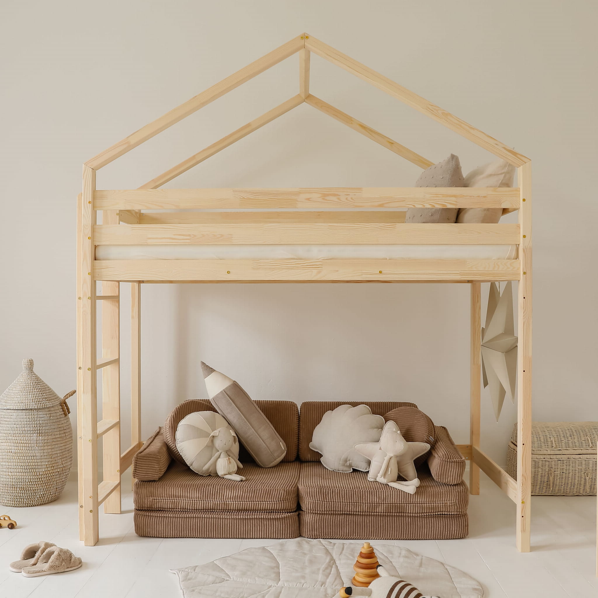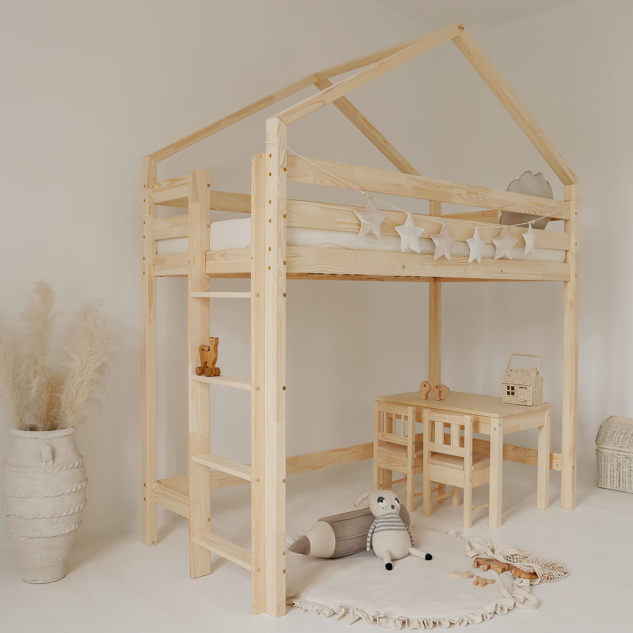 Υπερυψωμένο Σπιτάκι HouseBed Loft από μασίφ ξύλο Natural 90×200cm Luletto (Δώρο 10% έκπτωση στo Στρώμα)